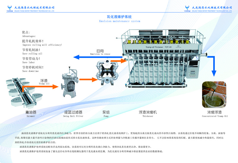 涌清浮渣收集浓缩系统对于乳化液质量控制属于革命性创新,当你使用涌清浮渣收集浓缩系统对你的乳化液进行处理后,你的产品质量和乳化液质量会有惊人的变化。